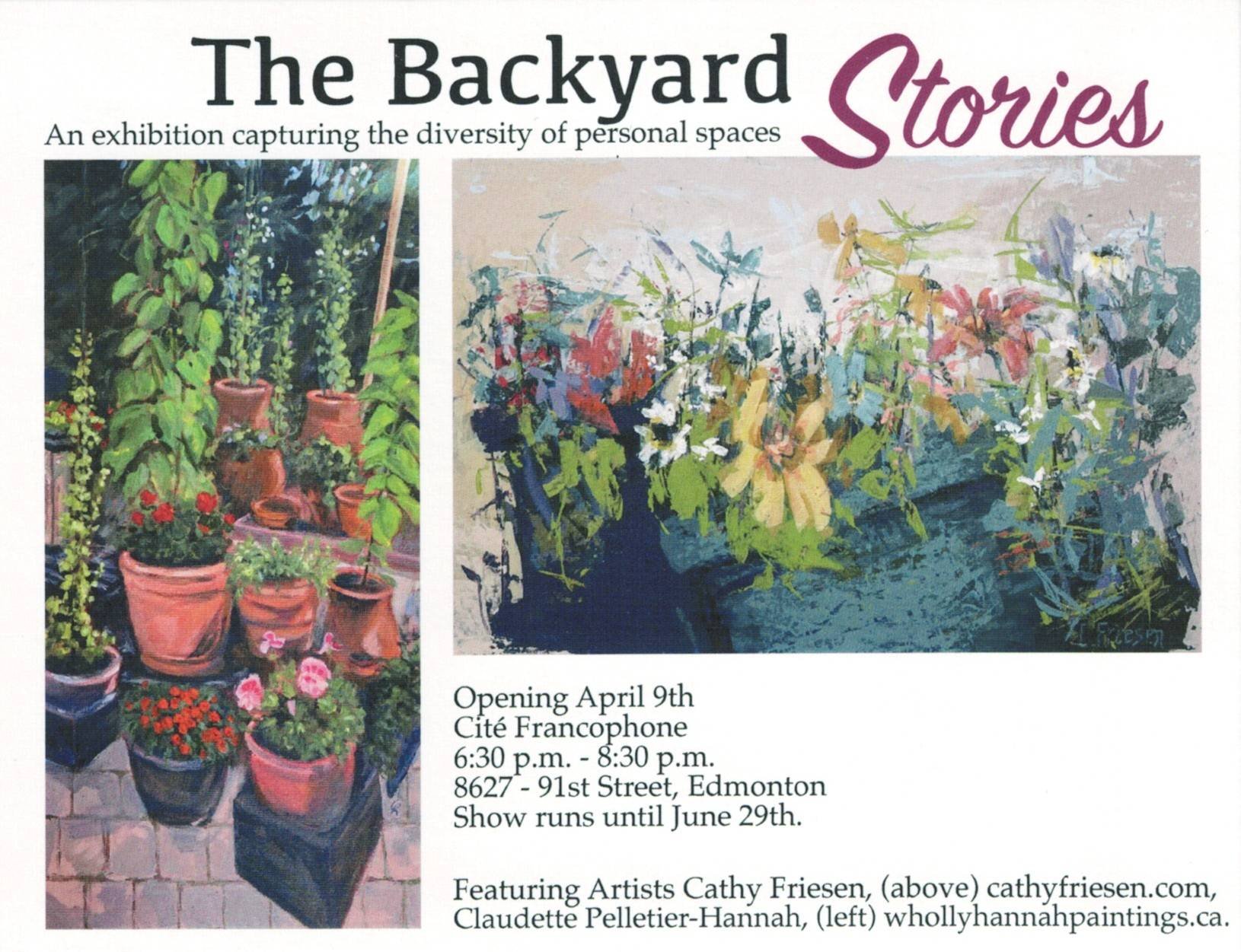 The Backyard Stories was born of a love of flowers and vegetation. The exhibition highlights private places and spaces, namely backyards. The yards have stories, as do their owners, illustrating the personalities and creativity of the gardeners who build them.